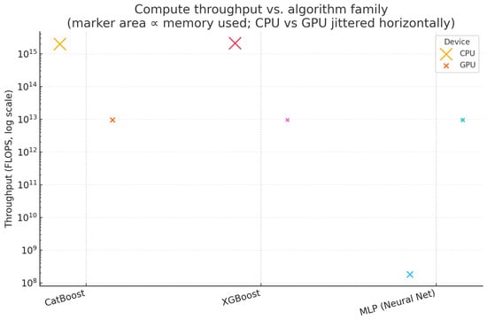 The classical machine learning models were systematically classified into ensemble methodologies, discriminant-based techniques, statistical regressions, Bayesian probabilistic models, decision tree classifiers, instance-based learning, and baseline metrics. Ensemble methods, containing Random Forest [28], Stacking [29], Bagging [30], AdaBoost [31], Gradient Boost [32], and Histogram-Based Gradient Boosting (HGBT) [33,34], were collectively executed using CPU. Notably, three models from the ensemble boosting family, CatBoost [35], LightGBM [36], and XGBoost [37], were implemented across both CPU and GPU environments, ensuring a circumscribed comparative assessment. Discriminant analysis comprised Regularized Discriminant Analysis (RDA) [38], Quadratic Discriminant Analysis (QDA) [39], and Linear Discriminant Analysis (LDA) [40], each employing distinct covariance estimation techniques. Linear methodologies incorporated Support Vector Machines (SVMs) [41]. Probabilistic classifiers followed a Bayesian framework, featuring GaussianNB [42], BernoulliNB [43], and MultinomialNB [44]. Additionally, Decision Trees (DT/C4.5) [45] adhered to recursive partitioning principles, while K-Nearest Neighbors (KNN) [46,47] maintained an instance-based classification approach.