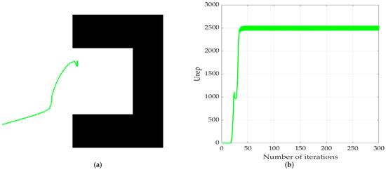 The APF with the above modified repulsion function is fused with the optimized Dijkstra’s algorithm, and the simulation is shown in Figure 10 when facing a U-shaped obstacle.