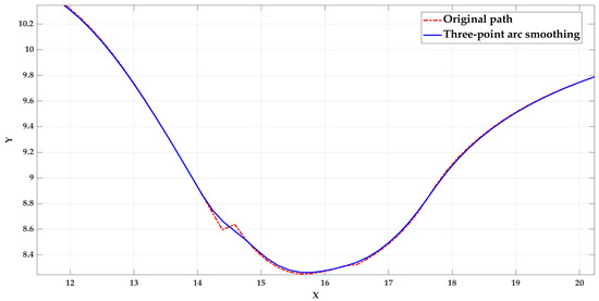 Figure 16. Path diagram after smoothing by the three-point arc method based on the steering model.