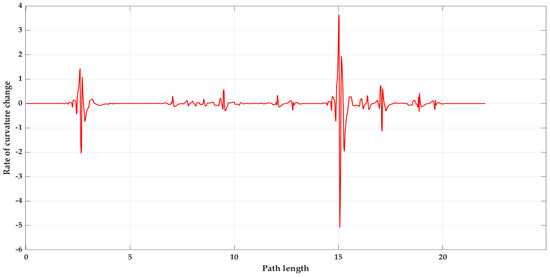 Figure 14. Plot of the rate of change of path curvature after smoothing.