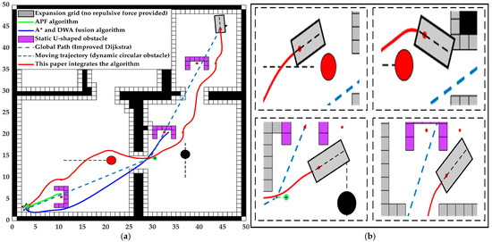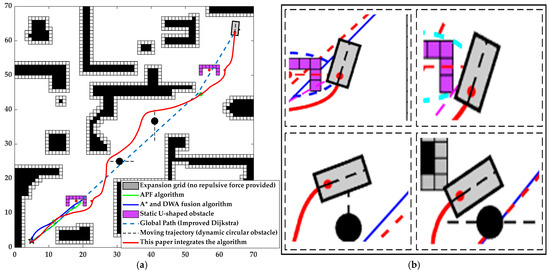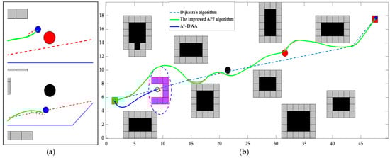 Figure 19. Algorithm comparison diagrams. They are: (a) Obstacle avoidance detail diagram; and (b) Algorithm comparison diagram.