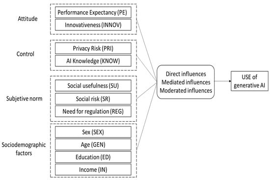 Subjective norms, also referred to as social influence in models such as the Unified Theory of Acceptance and Use of Technology (UTAUT) [27], have been extensively reported as a relevant variable for understanding the adoption of AI [20,61] and GAI in both societal [37,47] and industrial [39] contexts, as well as for academic purposes [62,63].