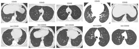 The SARS-CoV-2 CT Scan dataset, Figure 1, is publicly available on Kaggle. It consists of 1252 CT scans from patients diagnosed with SARS-CoV-2 infection (COVID-19) and 1230 scans from non-infected individuals, resulting in 2482 CT scans. Data were collected from actual patients in hospitals in São Paulo, Brazil [22]. In the context of COVID-19 image analysis, pre-processing techniques are important to enhance image quality, improve feature extraction, and increase the accuracy of machine learning and deep learning models.