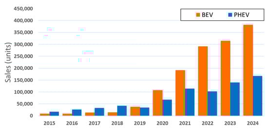 - Available online: https://www.statista.com/statistics/665774/global-sales-of-plug-in-light-vehicles/ (accessed on 21 May 2025).