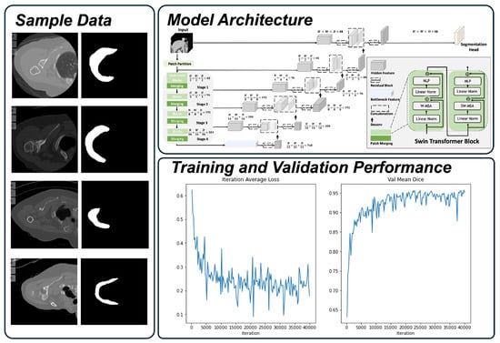 - Hatamizadeh, A.; Nath, V.; Tang, Y.; Yang, D.; Roth, H.; Xu, D. Swin UNETR: Swin Transformers for Semantic Segmentation of Brain Tumors in MRI Images. In Lecture Notes in Computer Science; Springer: Cham, Switzerland, 2022. [Google Scholar] [CrossRef]