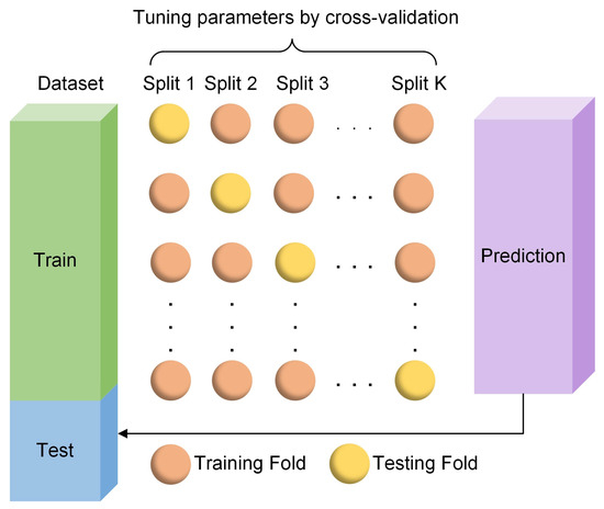 To better estimate the average performance of the model, the K-fold cross validation method is chosen in Figure 10 [31]. K-fold cross validation is a technique commonly used in statistical modelling and machine learning. In the process, the entire dataset is randomly divided into k subsets of equal size. During this k training and verification process, one of them will be selected each time. One subset is used as the verification set, and the remaining k−1 subsets are used as the training set to train the model.