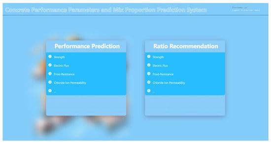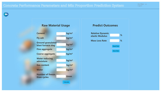 Moreover, the research group has made achievements in the prediction of different properties of concrete and the recommendation of proportion and made a complete software system. Figure 24 presents the main interface of system function selection, including frost resistance, strength, electric flux and other properties. Figure 25 presents the interface of frost resistance prediction, which also provides the prediction of relative dynamic elastic modulus and mass loss rate. The prediction model is DMSOA-CatBoost. It provides an efficient and accurate tool for engineers and researchers to optimise the design and preparation process of concrete, which not only improves engineering quality but also substantially reduces material waste and engineering costs whilst contributing to the development of concrete technology.