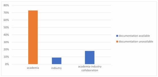 DSLs for algorithmic graph processing are developed in an academic context, an industrial context, or as part of an industrial-academic collaboration. Figure 4 gives the development context distribution of surveyed DSLs and shows the availability of online documentation for each context. Interestingly, all the DSLs for which we were able to find documentation with a language specification (Green-Marl, GraphIt, and PGX Algorithm) are developed in a fully or partially industrial context. Green-Marl was developed at Standford University in collaboration with Oracle, and it is used internally by the latter to implement over 60 graph algorithms available off the shelf in Oracle products. PGX Algorithm is developed at Oracle Labs as a DSL for writing graph algorithms using Java syntax. PGX Algorithm maps to the Green-Marl compiler and is used in several Oracle products for large-scale graph analytics. The authorship affiliations for papers on GraphIt include both MIT (Massachusetts Institute of Technology) and Adobe Research, which hints at an industrial-academic collaboration. The vertex-centric DSLs we survey, as well as early work on Green-Marl, target execution platforms based on Pregel, a distributed graph processing framework developed at Google. None of the publications we review explicitly study the usability of their DSL solutions, though the intuitive and concise syntax is often mentioned as a benefit. Hong et al. [] report on their early experiences using Green-Marl for industrial graph analytics, citing an intuitive programming model as a key benefit and identifying the learning curve and DSL documentation as areas for improvement.