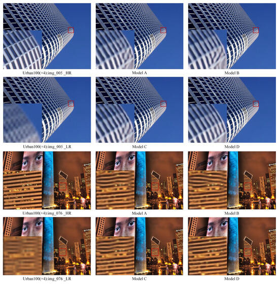 Quantitative results of these four model variants are presented in Table 1, with evaluations conducted on five standard super-resolution benchmarks under a fixed ×4 upscaling factor.