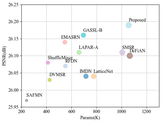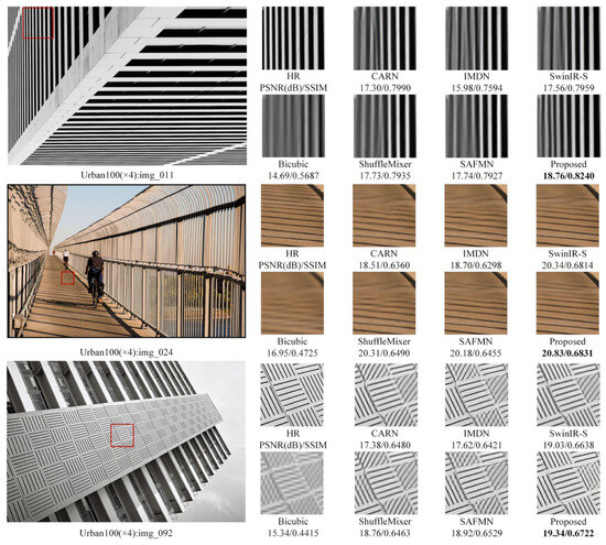 In the early stages of research, scholars focused on lightweight design strategies for convolutional neural networks. SRCNN [3] is the first CNN-based framework for single-image super-resolution. FSRCNN [4] eliminated preprocessing-stage interpolation by operating directly on low-resolution inputs, significantly accelerating training. VDSR [5] and EDSR [6] both drew on the principles of residual learning to accelerate model convergence and enhance training efficiency. The emergence of attention mechanisms has partially alleviated the CNN’s receptive field limitations. RCAN [26] enhanced feature representation by integrating residual channel attention. HAN [27] combined layer-wise and channel–spatial attention to comprehensively model inter-feature dependencies, achieving notable performance gains. With the rise of vision Transformers [28], researchers have begun integrating Transformer-based global modeling into lightweight SISR designs. SwinIR [12] combined local feature modeling with global attention via a sliding-window mechanism, reducing complexity while enhancing reconstruction fidelity.