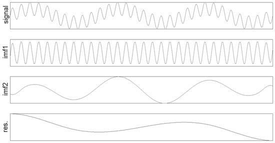 Apply the EMD algorithm to each signal experiment with noise yi(t), decomposing it into a set of IMFi (i = 1, 2, …, ) as demonstrated in Equation (1).