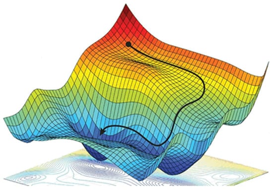 The purpose of gradient descent is to find the minimum value of the cost function. The cost functions primarily include the mean squared error (MSE), the calculation formula for which is shown in Equation (10), and the cross-entropy loss (CEL) function, which is shown in Equation (20). The mean squared error is commonly employed to measure the error between predicted values and true values in prediction tasks. The CEL is frequently employed to measure the error between predicted probabilities and true labels in classification tasks.