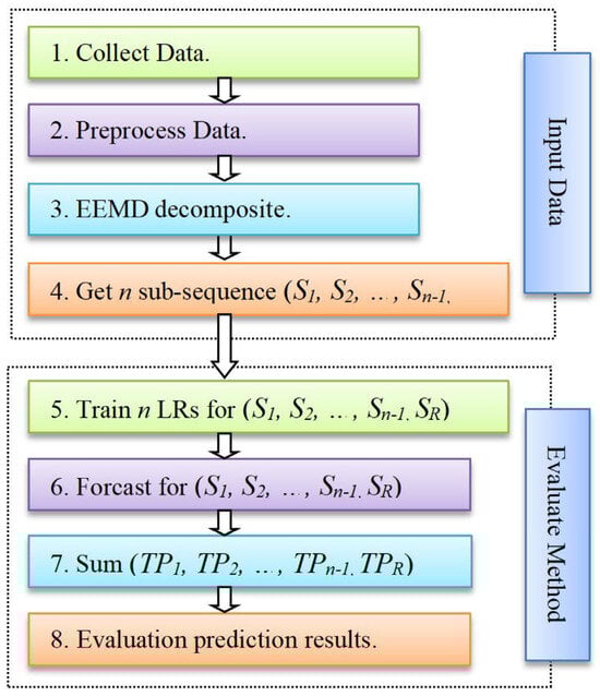 The EEMD-LR framework faces challenges in highly volatile scenarios (e.g., abrupt regime shifts or extreme events), where EEMD may suffer from residual mode mixing, that compromises its decomposition stability and LR components might inadequately capture transient nonlinear dynamics. For future work, we propose the following: (1) integrating adaptive noise-assisted EEMD variants (e.g., CEEMDAN) to enhance the model’s robustness in high-variability contexts; (2) replacing LR with attention-based deep learning modules (e.g., transformers) to model complex temporal dependencies; (3) developing an uncertainty quantification mechanism for probabilistic forecasts. To strengthen the model’s practical relevance, we will anchor discussions to concrete real-world applications: (a) short-term renewable energy forecasting (e.g., solar/wind generation under erratic weather) and addressing intermittency management for grid stability; (b) high-frequency financial volatility prediction (e.g., cryptocurrency markets) to support algorithmic trading risk control. Case studies from these domains will be prioritized in validation, with methodological advances being explicitly linked to tangible operational impacts.