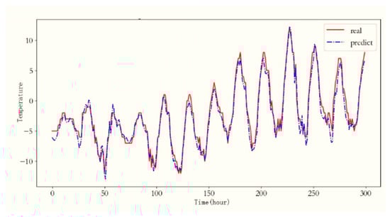 The forecasting results of LR and EEMD-LR for the temperature were evaluated using the MAE and RMSE evaluation indexes, as observed in Table 3. The comparison of the evaluation indexes reveals that EEMD-LR outperforms LR in terms of its RMSE and MAE. Moreover, Figure 18 illustrates the temperature forecasting results achieved by EEMD-LR.