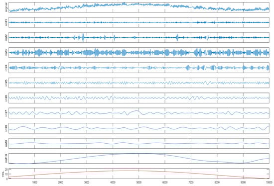 EMD is the abbreviation for empirical mode decomposition. It is a signal processing approach introduced by Huang et al. in 1998 [31]. It addresses the challenges posed by traditional decomposition methods when dealing with non-stationary and nonlinear signals. Instead of relying on predefined assumptions, EMD adaptively breaks down signals into components known as IMFs (intrinsic mode functions), with each capturing specific frequency and amplitude characteristics. This technique stands out for its ability to capture local signal nuances.
