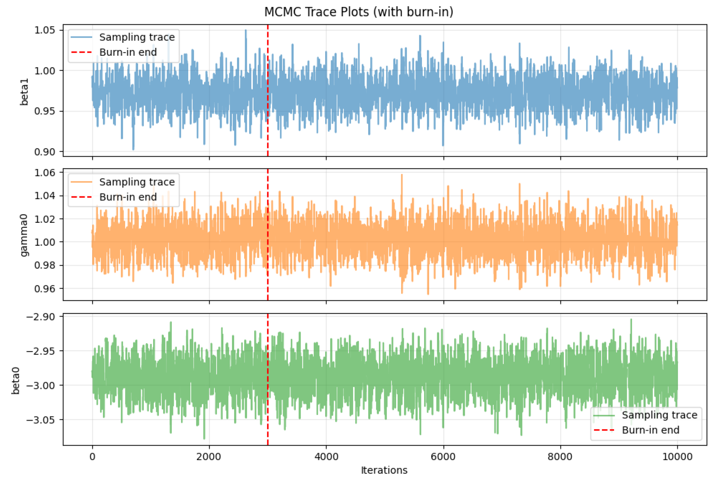 Figure 6. MCMC trace plots for BeeSwarm-MH sampling.
