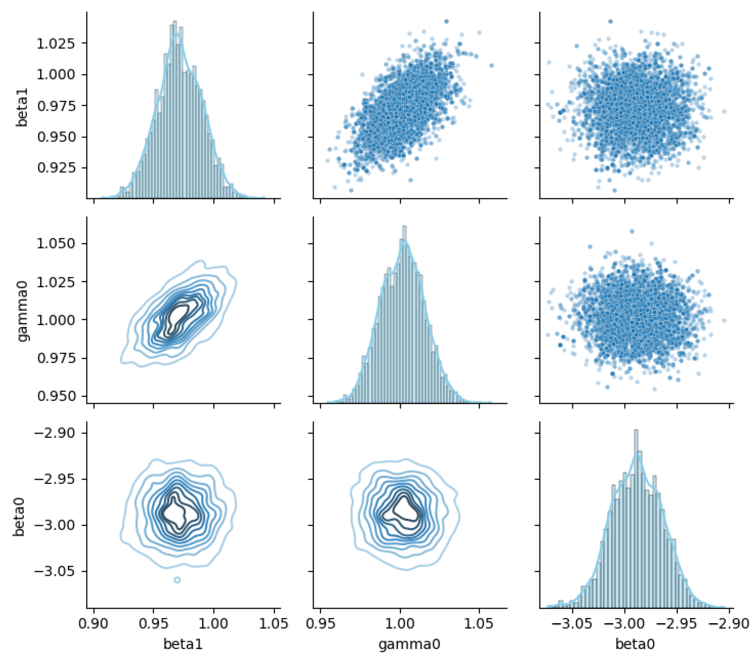 Figure 8. Joint posterior relationships among GL-equation parameters.
