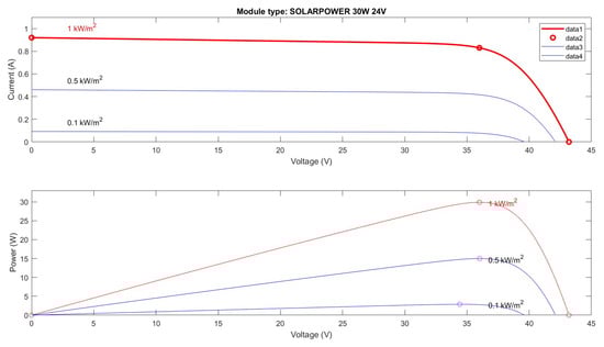 I–V and P–V curves of the SOLARPOWER 30W 24V module.