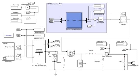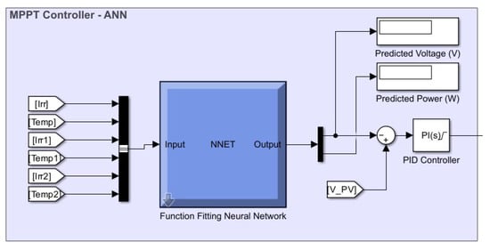 The trained network is subsequently integrated as a Simulink block within the MPPT control system, as illustrated in Figure 10.