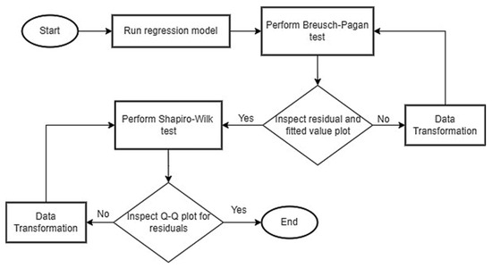 Assumption and diagnostic tests ensure the reliability and accuracy of regression model predictions. Figure 4 presents the diagnostic procedure.