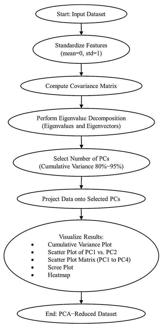 Eigenvalues and eigenvectors were computed, ranking principal components in descending order of variance explained. The first principal component (PC1) captured the highest variance, guiding dimensionality reduction.
