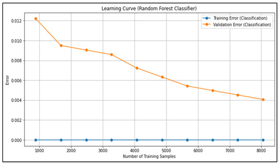 Learning curve analysis evaluates the Time Series Regression Forest (TSRF) model’s performance and generalization across varying training data sizes. It helps identify underfitting, overfitting, and optimal performance conditions. The analysis is conducted separately for the regression (DTR) and classification (RF) components of the hybrid model.