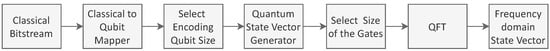 Formally, if the input classical bitstream is divided into blocks of length n, each block can be represented as a bit string () as in Equation (3).