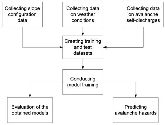 Along with assessing avalanche susceptibility and analyzing the consequences of snow disasters, early avalanche forecasting remains a key area of contemporary research. This is particularly relevant in the context of the development of machine learning technologies capable of quickly processing diverse meteorological and snow data to develop preventive solutions. This approach was demonstrated in a study by Bohini et al. [], which attempted to develop high-precision models for early avalanche detection based on ensemble algorithms. The study conducted a comparative assessment of the performance of models such as RF, gradient boosting, XGBoost, and neural networks, using metrics of accuracy, sensitivity, completeness, F1 score, and ROC curve. The results showed that XGBoost once again demonstrated its superiority, especially in terms of gradient boosting optimization by increasing resistance to unbalanced classes and efficiency with high-dimensional data.