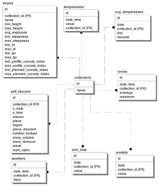 The aforementioned data were compiled into a database named “avalanchejournals” based on the MySQL 8.0 database management system. The following set of tables was created in the specified database: