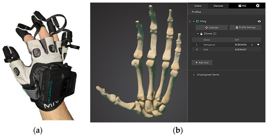 (a) The Quantum Metaglove and (b) the graphical interface provided by Manus.