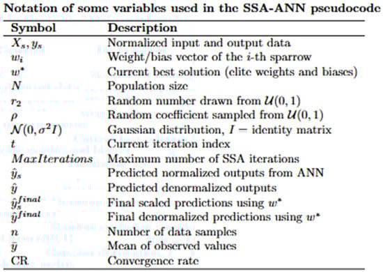 - The model effectiveness is evaluated utilizing root mean square error (RMSE) and coefficient of determination (R2), as presented in Table 4. Figure 2 illustrates the flowchart for the SSA-ANN methodology. The pseudocode of the SSA-ANN model and description of variables used are shown in Algorithm 1 and Figure 3, respectively.