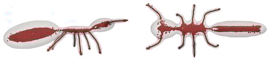 The Shape Diameter Function is defined as a scalar function representing the neighborhood diameter of M at each point []. We obtain an SDF-based point cloud following Shapira et al.’s [] procedure. Each SDF-based point is generated as follows: