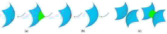 It is also important to note that, in our approach, we frequently use local Principal Component Analysis (PCA) in order to identify Piecewise Linear approximations for curves and surfaces within a point cloud. We do not try to approximate a curve or a surface with only one straight edge or only one planar surface. In any case, the initial triangular meshes must be very dense in high frequency neighborhoods in order to respect the Whittaker–Nyquist–Shannon theorem [], regardless of any ulterior computation (e.g., Medial Axis, Resampling, Finite Element, etc.).