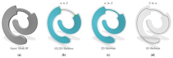 - Moreno-Avendano, S.; Mejia-Parra, D.; Ruiz-Salguero, O. Triangle mesh skeletonization using non-deterministic voxel thinning and graph spectrum segmentation. MATEC Web Conf. 2021, 336, 02030. [Google Scholar] [CrossRef]