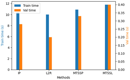 In addition to predictive performance, we assessed MTSSL’s computational complexity under our experimental setup. The model comprises 62 M parameters and performs approximately 41.57 GFLOPs per image forward pass. All the experiments were conducted on a Lambda QUAD deep learning workstation with AMD EPYC 7513 32-Core Processor, 4 NVIDIA A100-SXM4-80 GB GPUs. The training time was observed to be 11.8 s/iteration, and inference was 0.4 s/iteration or 12.5 ms per image latency. Figure 9 illustrates the training run time and the inference times of each method.