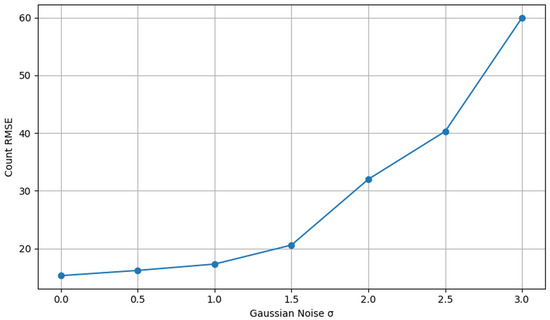 To evaluate the generalizability of the model, a subset of images without noise was chosen, and Gaussian noise was applied to observe the model’s performance in a controlled setting. This was helpful to assess the applicability of the model on different regions of the image based on the noise levels. Figure 15 shows that the count error increases with an increase in noise.