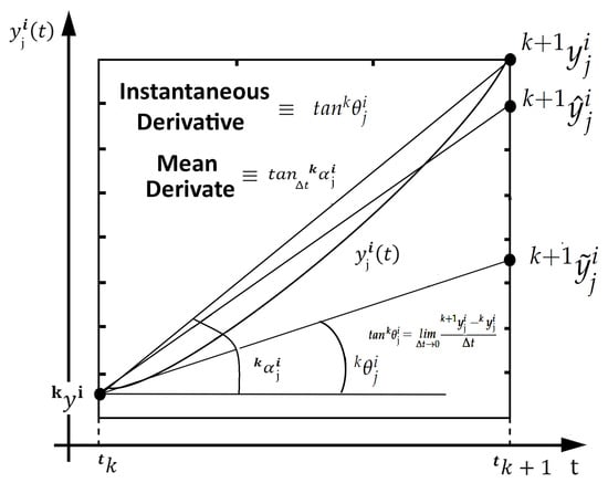 A geometric and intuitive difference between the mean and the instantaneous derivative functions is shown in Figure 1. In line with Figure 1 and Figure 2, the E-TUNI is entirely based on the concept of mean derivative functions and not on the idea of instantaneous derivative functions. As will be seen throughout this article, this change is quite significant when incorporated adequately into the Euler-type first-order integrator. Furthermore, the mean derivative functions can also be obtained from supervised training with input/output patterns using a neural network with any feed-forward architecture (MLP, RBF, SVM, among others).
