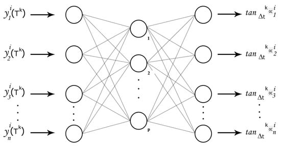 where p is the number of backward and/or forward instants and . For example, if then it is possible to design an E–TUNI with inputs in the role of backward mean derivatives and outputs in the role of forward mean derivatives. In this way, the reader is free to choose the values of and as long as the previous equality is satisfied. However, it should be noted that the first input of the neural network must be an absolute value, not a relative one.