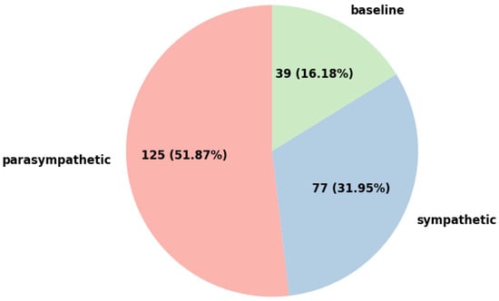 Distribution of subjects across baseline, sympathetic, and parasympathetic groups.