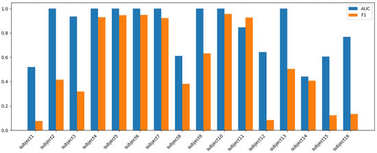 Per-subject model performance: AUC and F1-score.