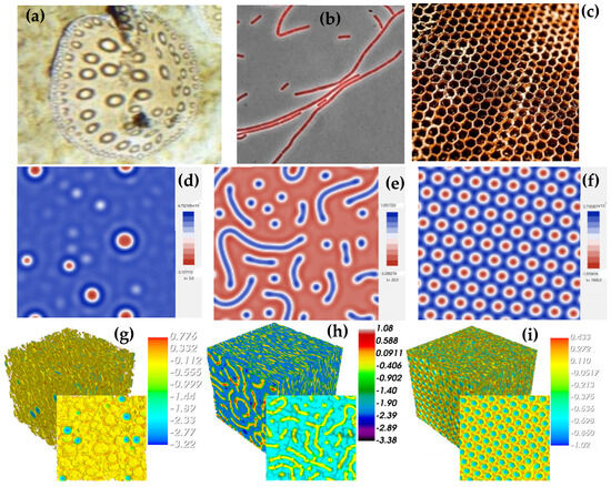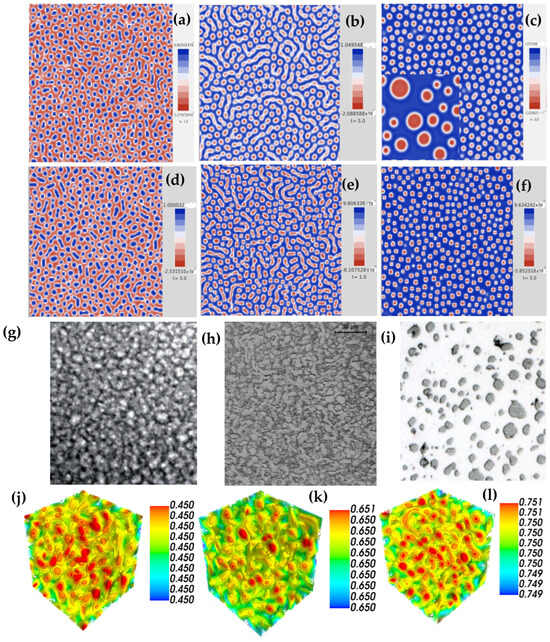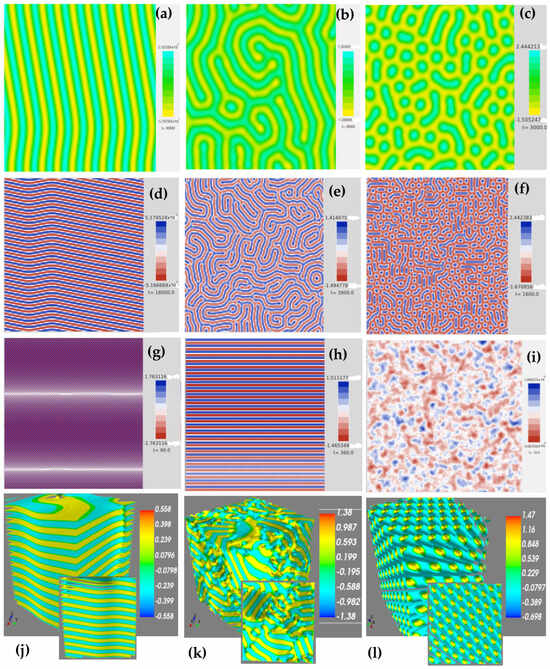 - Martínez-Agustín, F.; Ruiz-Salgado, S.; Zenteno-Mateo, B.; Rubio, E.; Morales, M.A. 3D pattern formation from coupled Cahn-Hilliard and Swift-Hohenberg equations: Morphological phases transitions of polymers, block and diblock copolymers. Comput. Mater. Sci. 2022, 210, 111431. [Google Scholar] [CrossRef]
