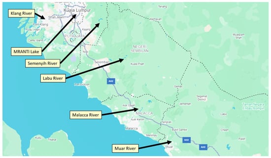 47]. Then, the MRANTI Lake is situated in the Malaysia Research Accelerator for Technology and Innovation Park, representing a relatively recent field of research. This lake serves as a site for recreation as well as for research and development, potentially resulting in innovative water management strategies. The lake is utilized by researchers and for tourism purposes, indicating that the water quality requires ongoing monitoring. The locations of the data are shown in