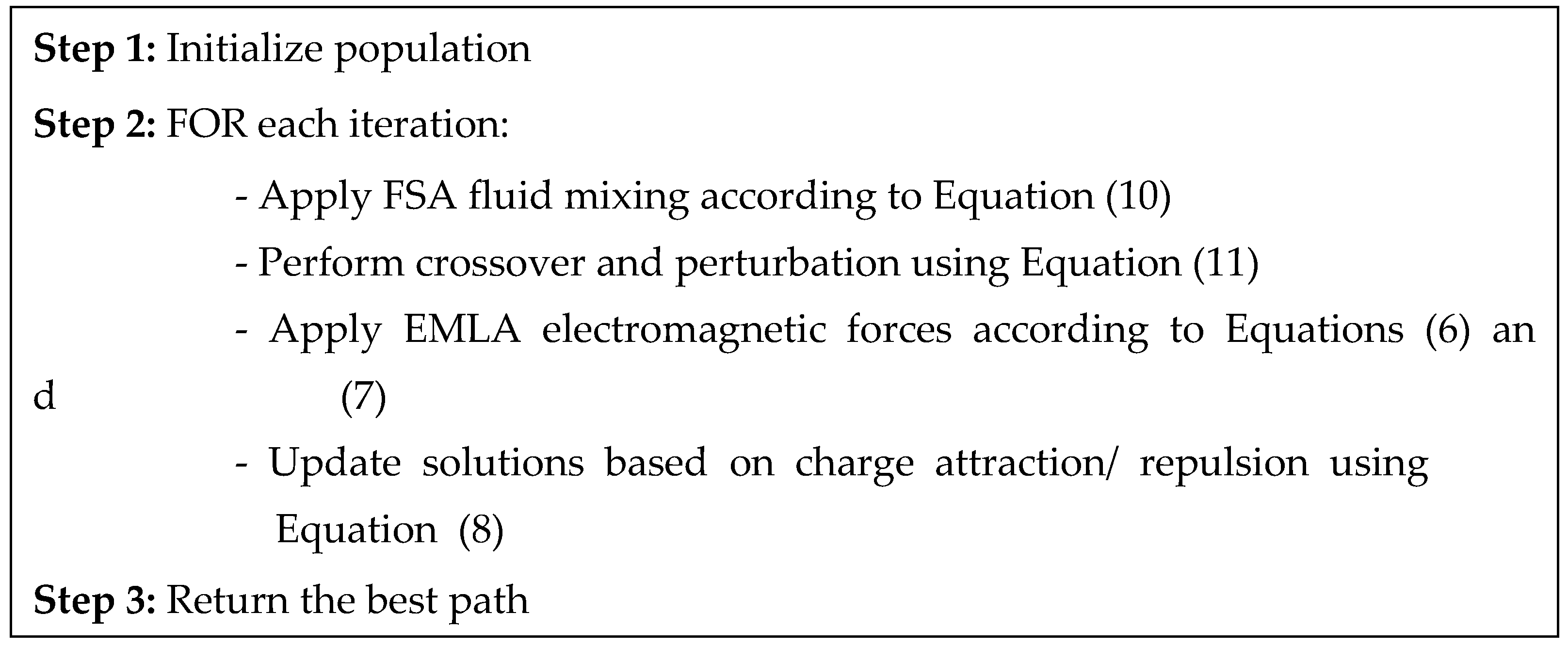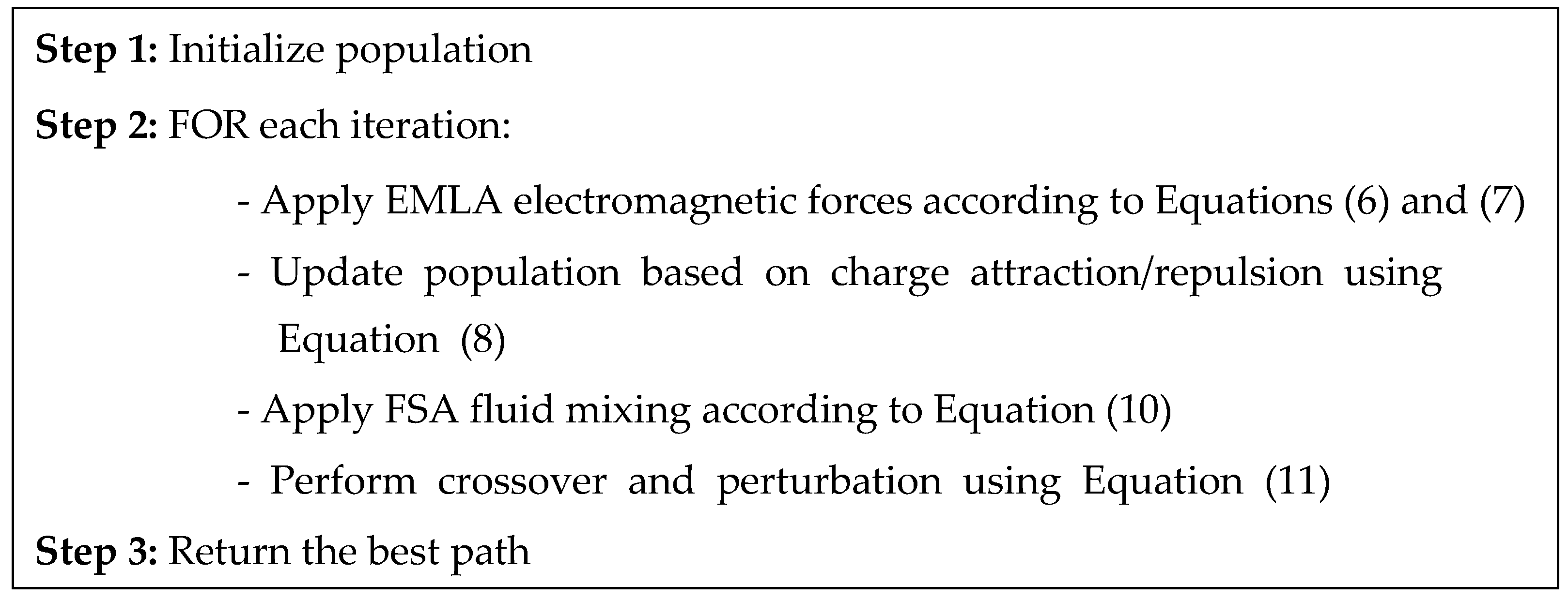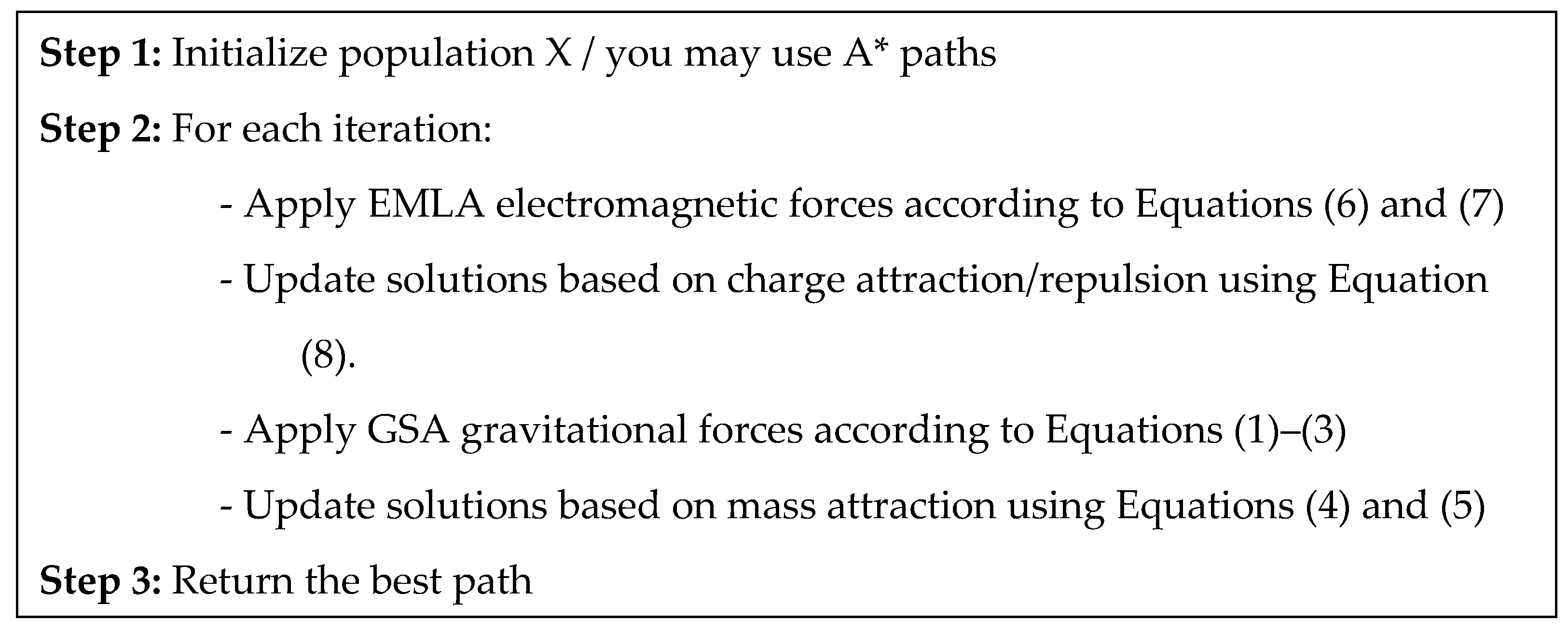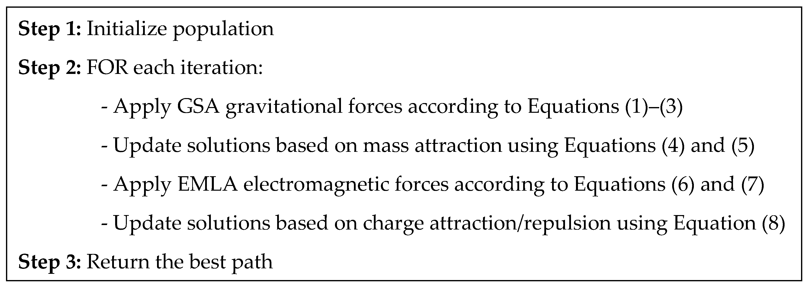 The hybrid approaches of GSA + EMLA and EMLA + GSA showed interesting synergies between the physical laws of gravitation and electromagnetism. GSA + EMLA showed superior performance, which can perform well, especially in fitness-oriented scenarios where superior solutions were obtained via gravitational convergence followed by electromagnetic refining. In large and complicated terrains, EMLA + GSA performed efficient strength, indicating that gravitational acceleration after electromagnetic search results in a positive response to uncertain environments. However, the two hybrid schemes also registered an increase in variability for certain measures, an indicator of parameter setting sensitivity and the need for careful tuning to make their performance stable across problem domains.