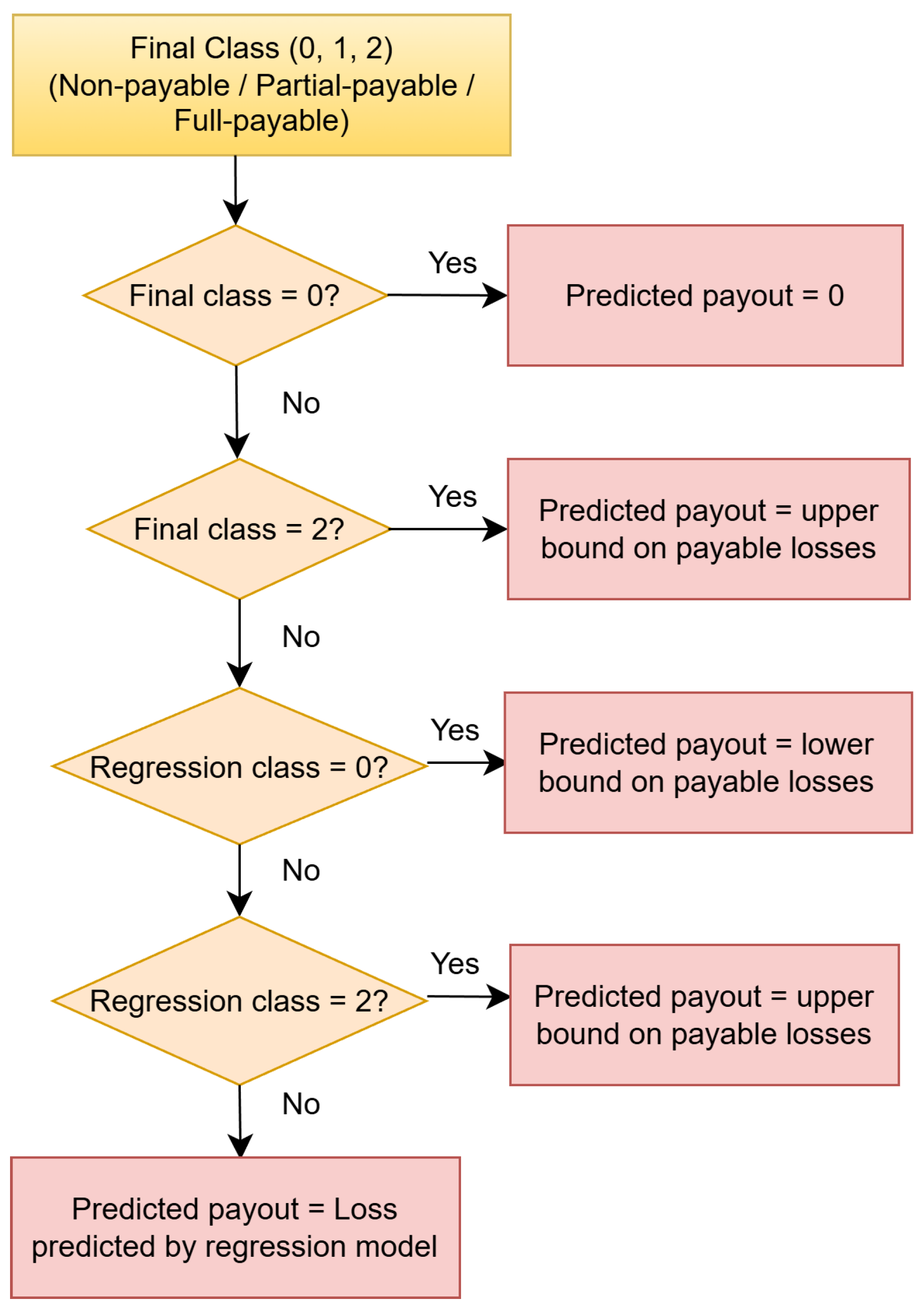 Section 4.4. In other cases (including cases with different classifications for each of the three classifications), if the regression is classified as 0, then the final payout amount is the lower bound of the payable loss. If the regression classification is 2, the final payment amount is the upper bound of the payable loss.