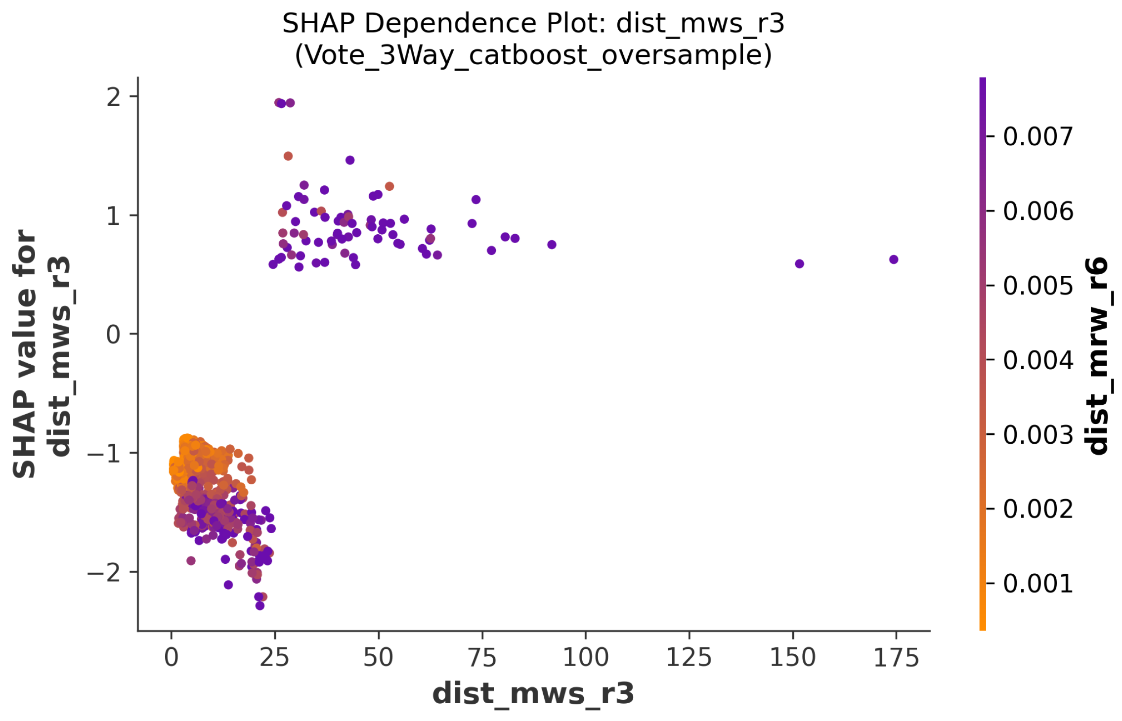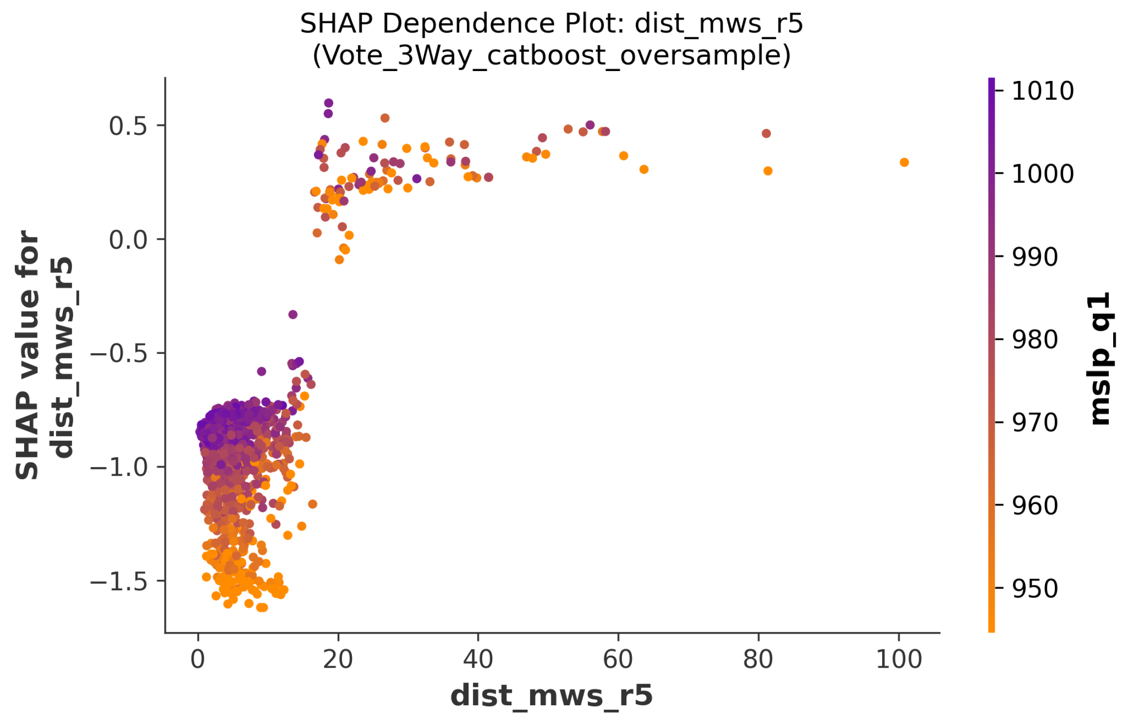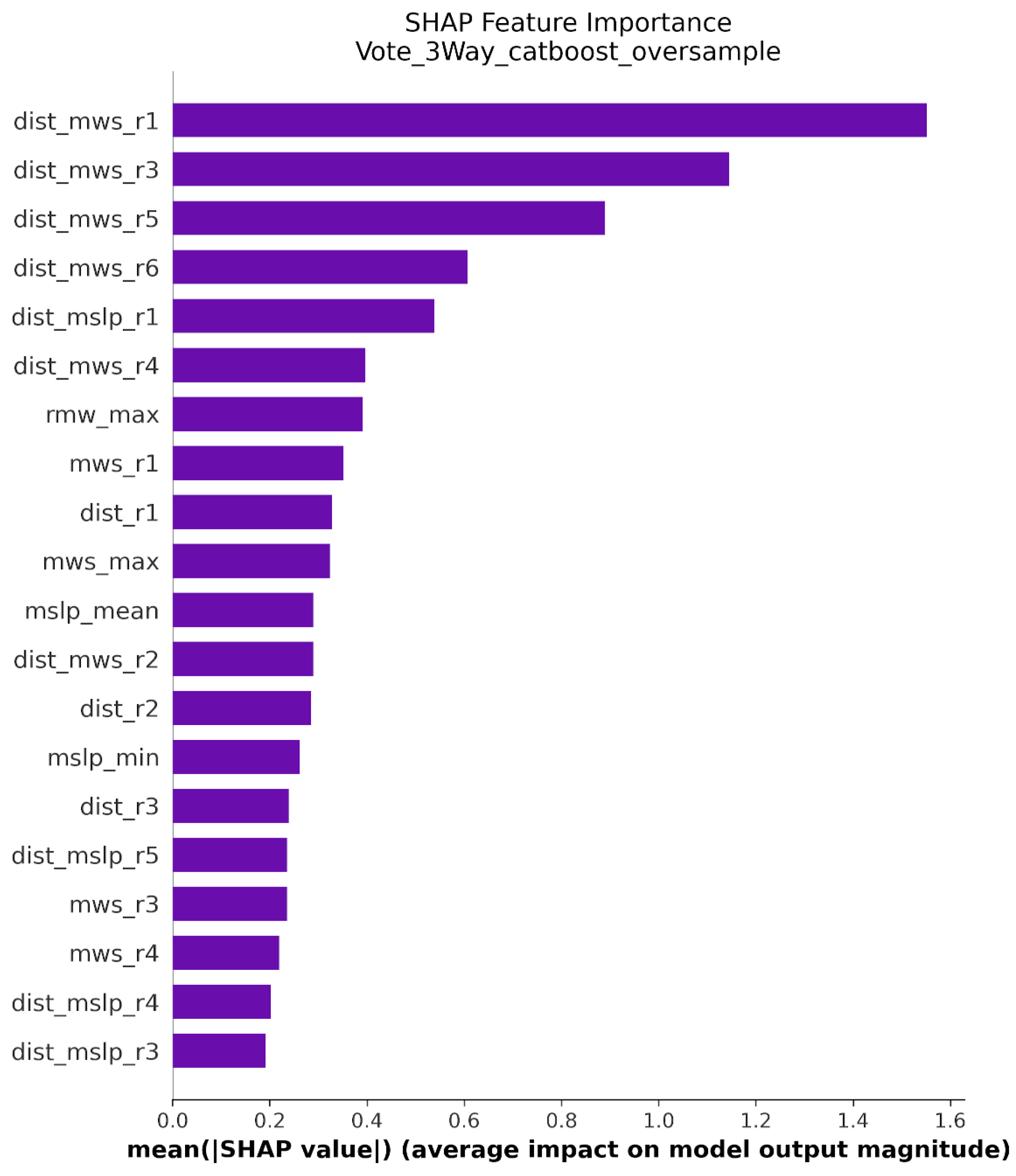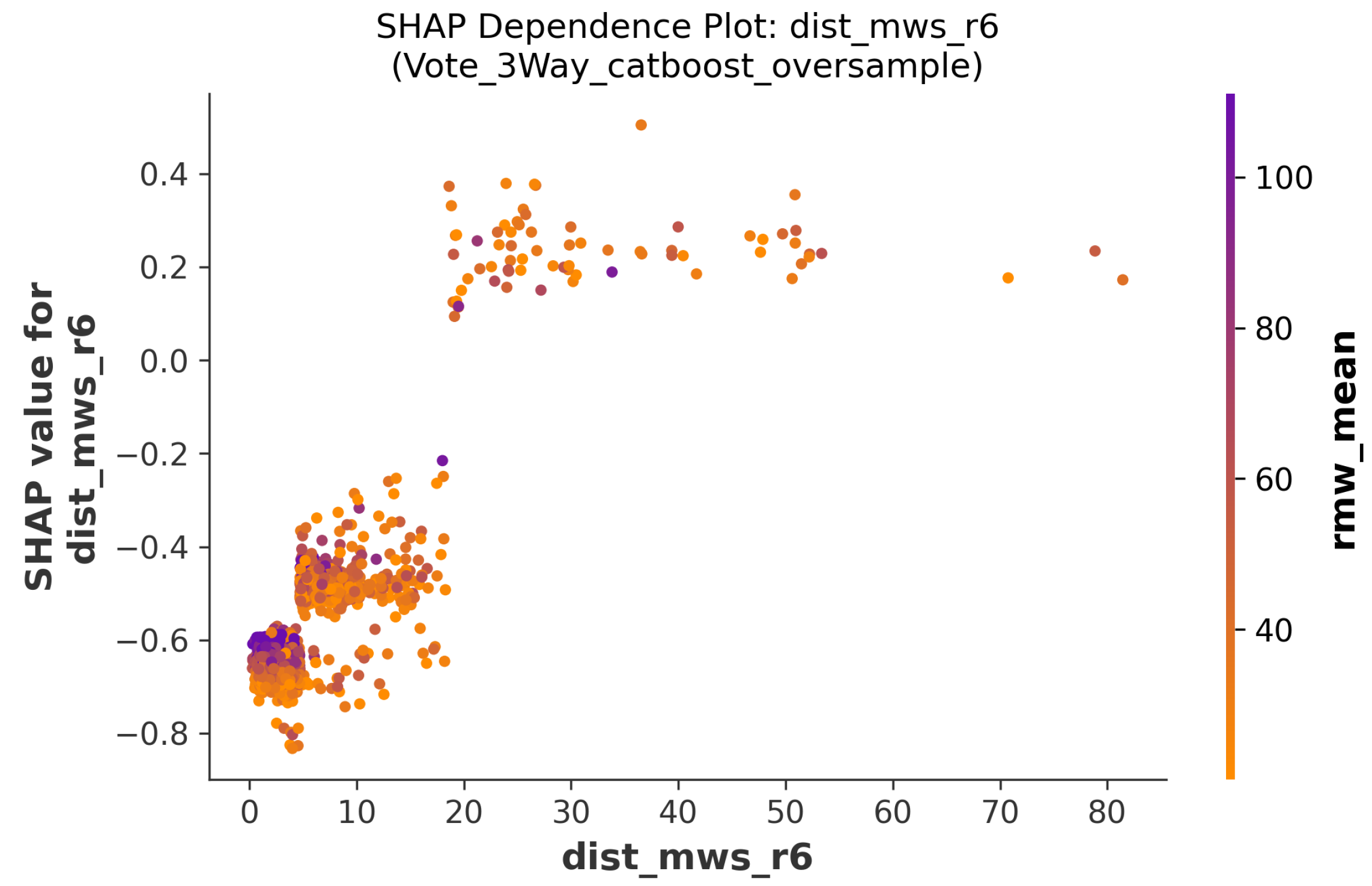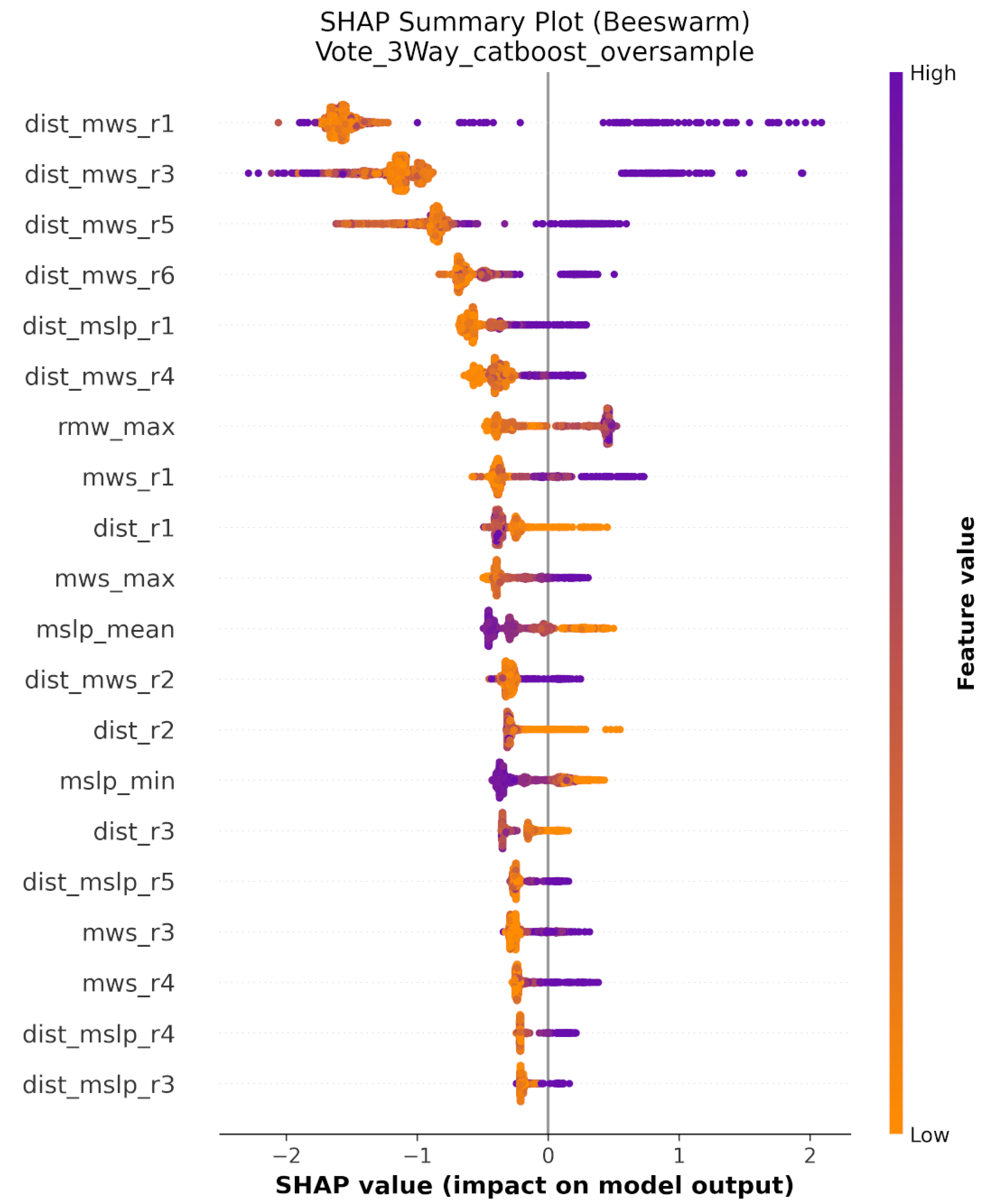 The total error in the validation set is smallest when the pre-processing is simple random oversampling and the model is trained with CatBoost, especially when the feature selection is the parameter information of the 6 nearest observational points and descriptive statistics of all observations for each parameter and interaction term. The scatter plots in