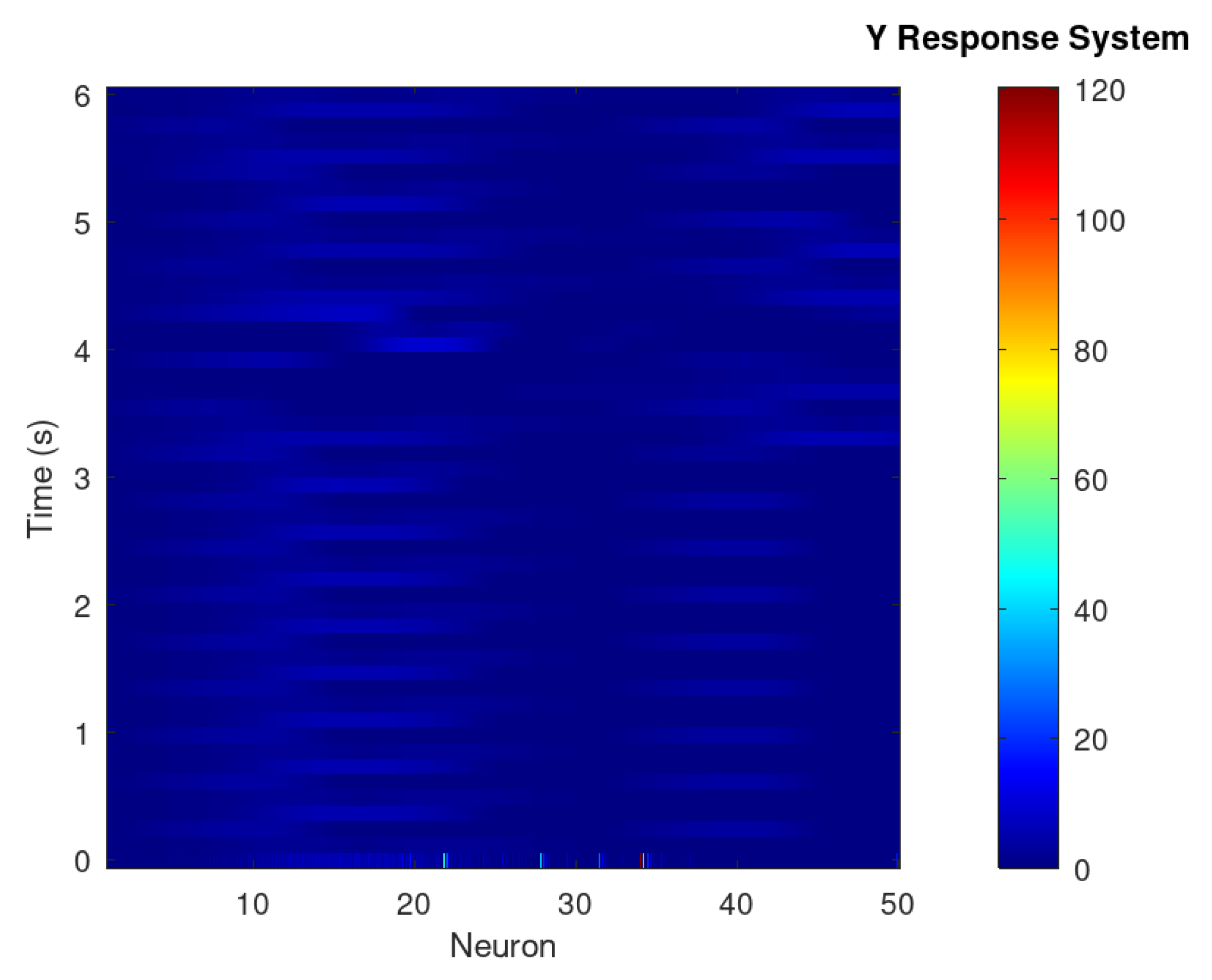Contour plot of the evolution in time of the identical neural network with neurons.