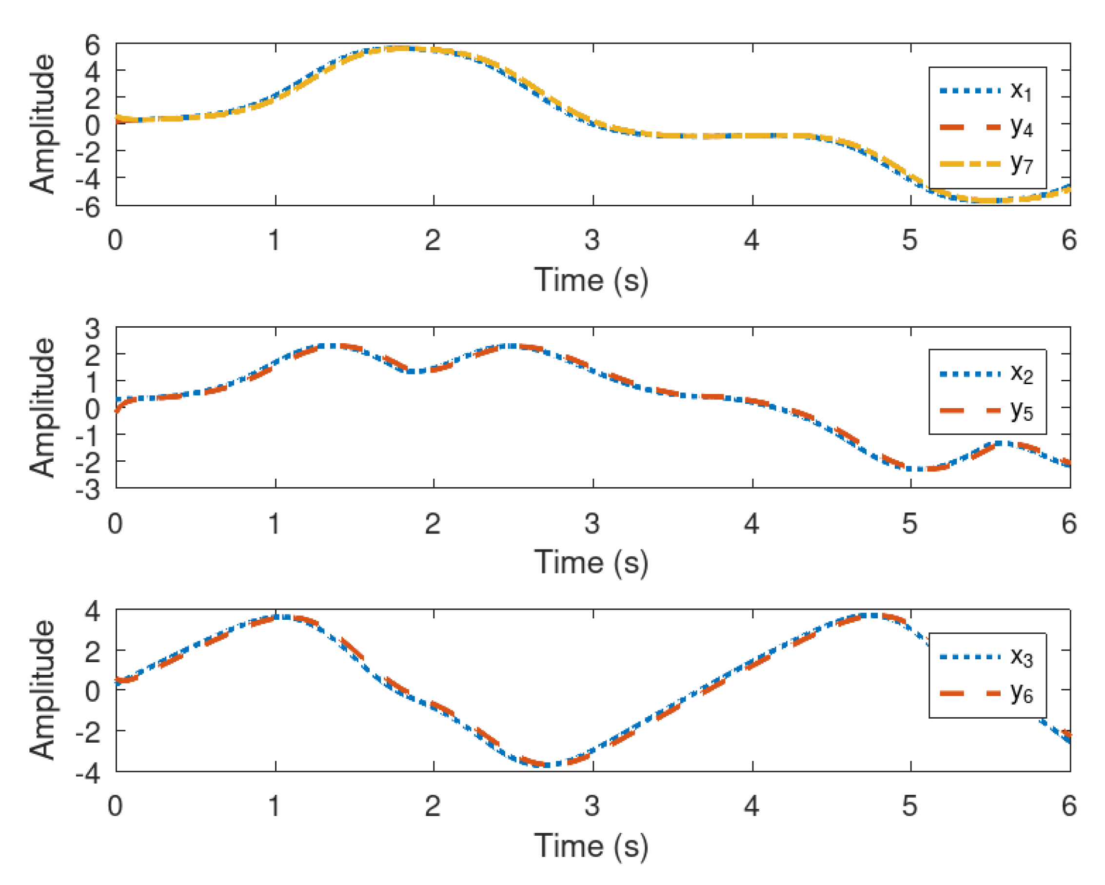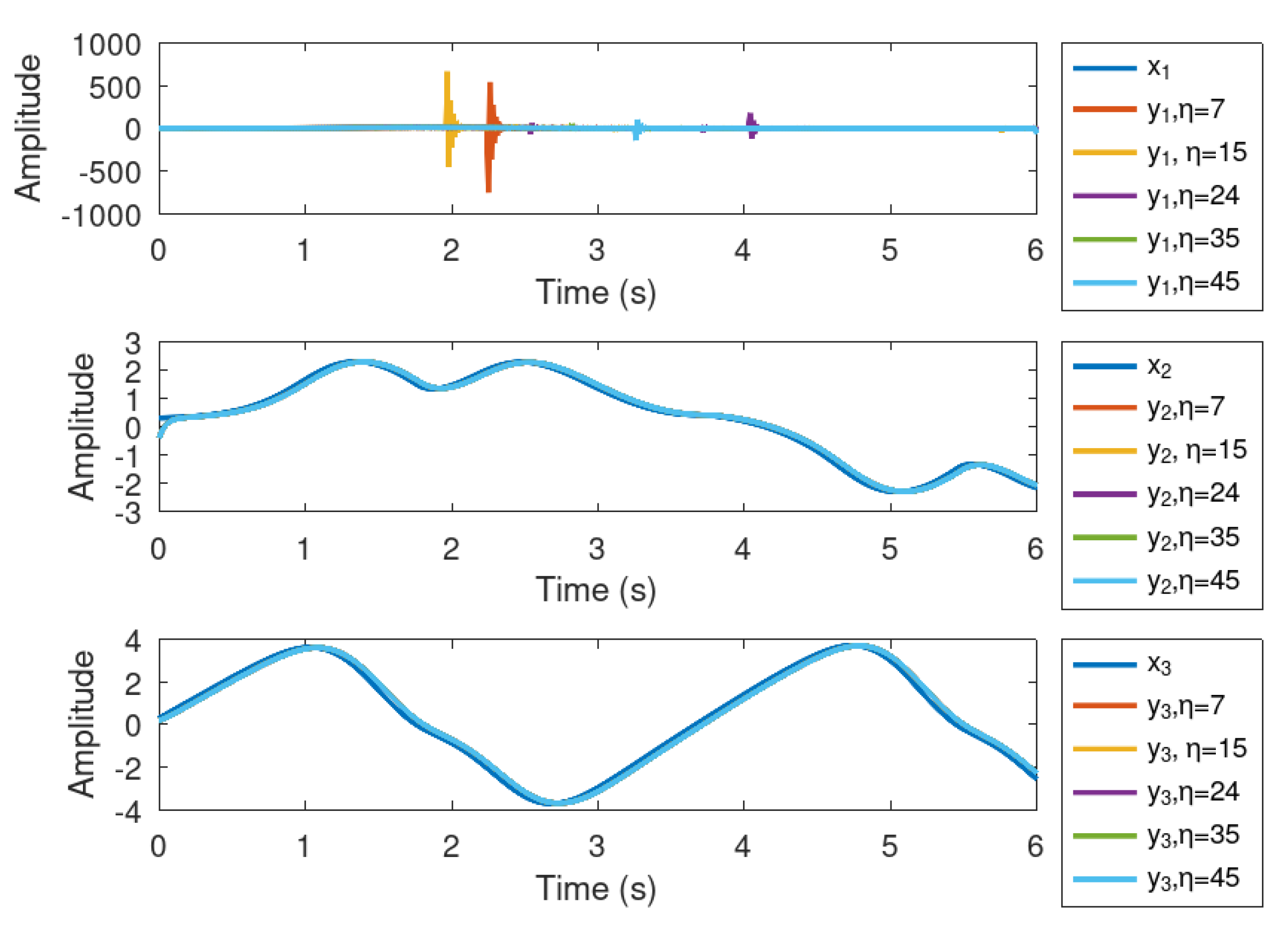 Plot of the evolution in time of the variables of the identical neural network with neurons.