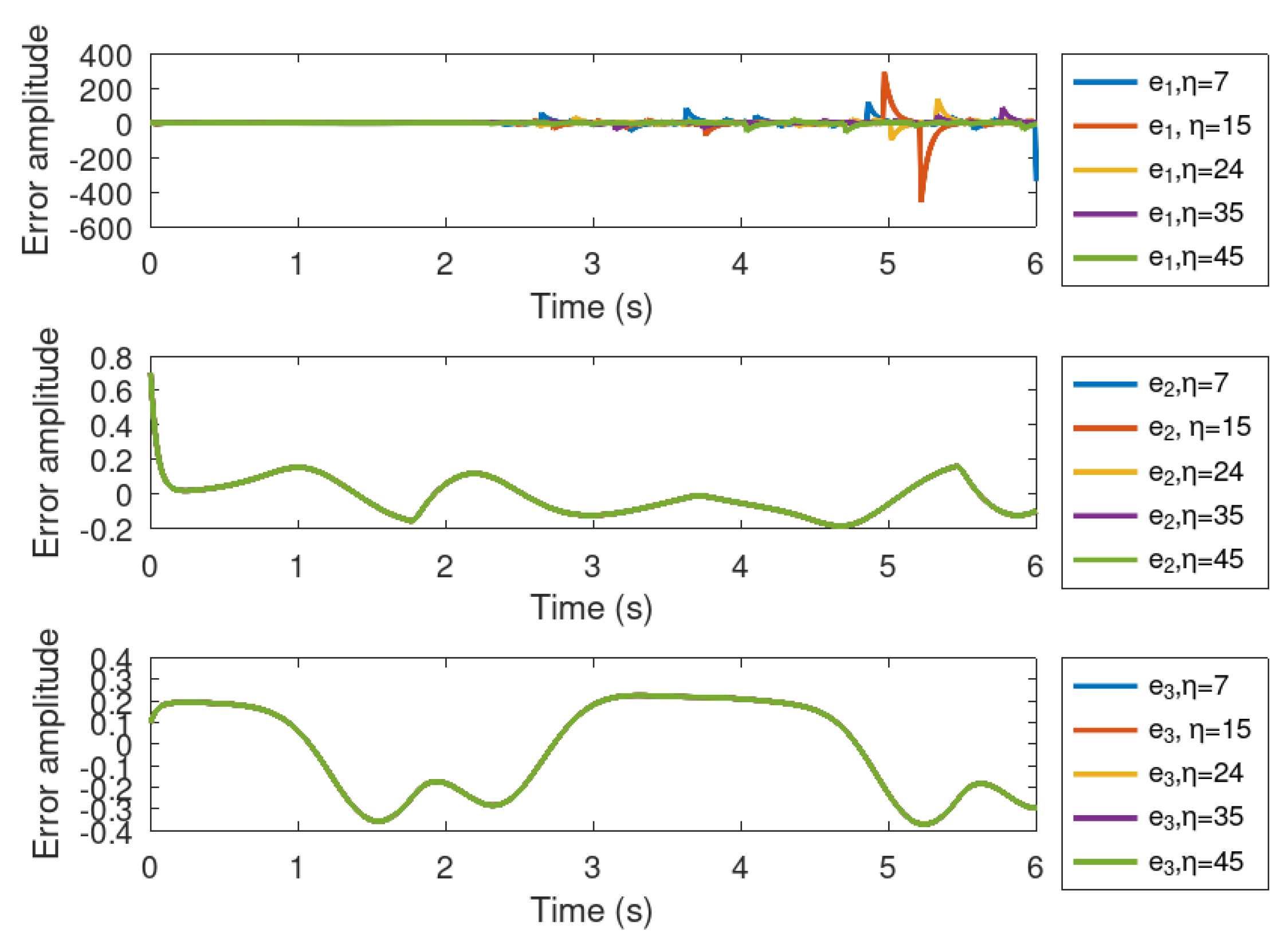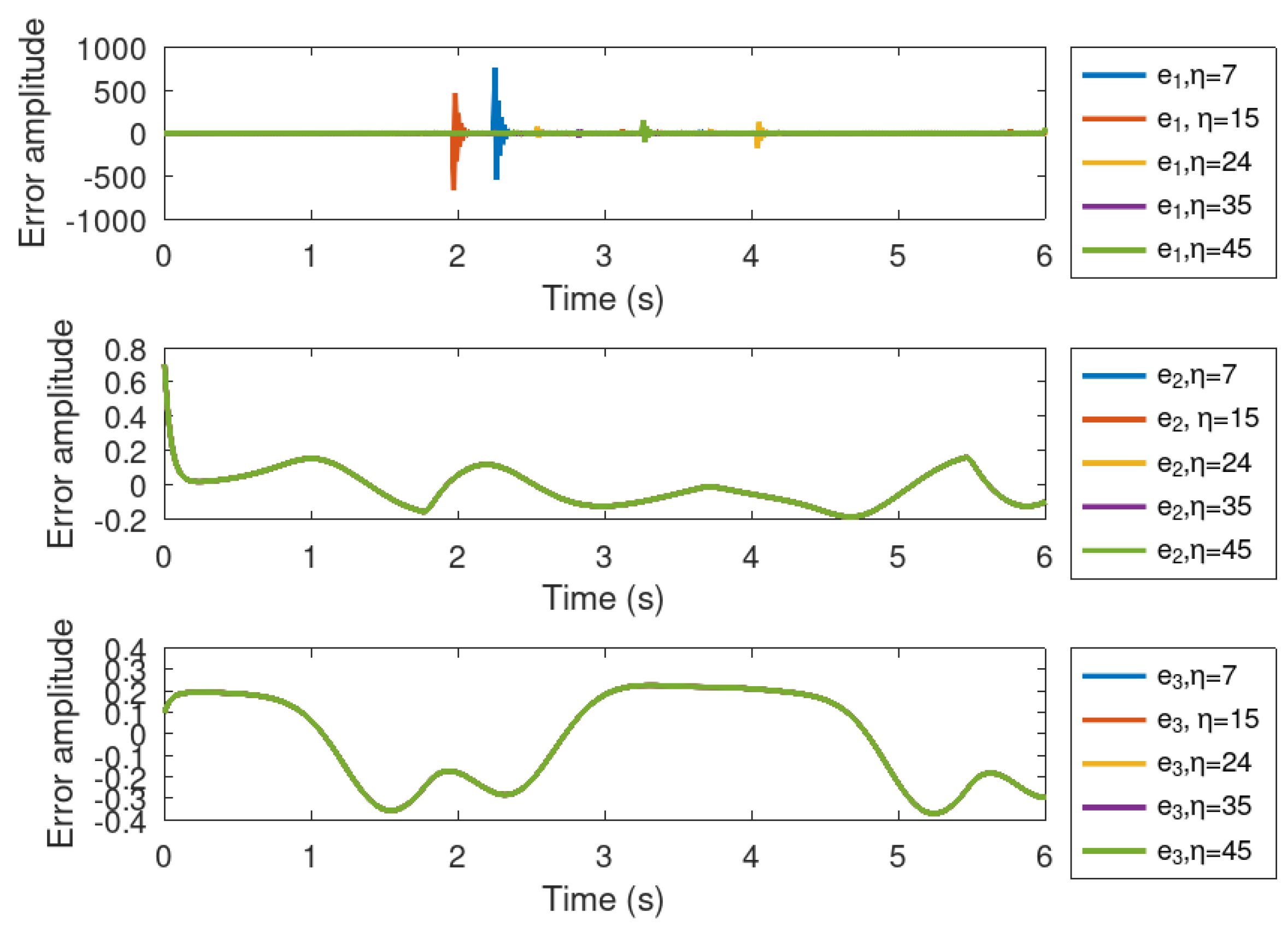 Evolution in time of the errors while varying the number of pinned nodes for the non-identical synchronization case.