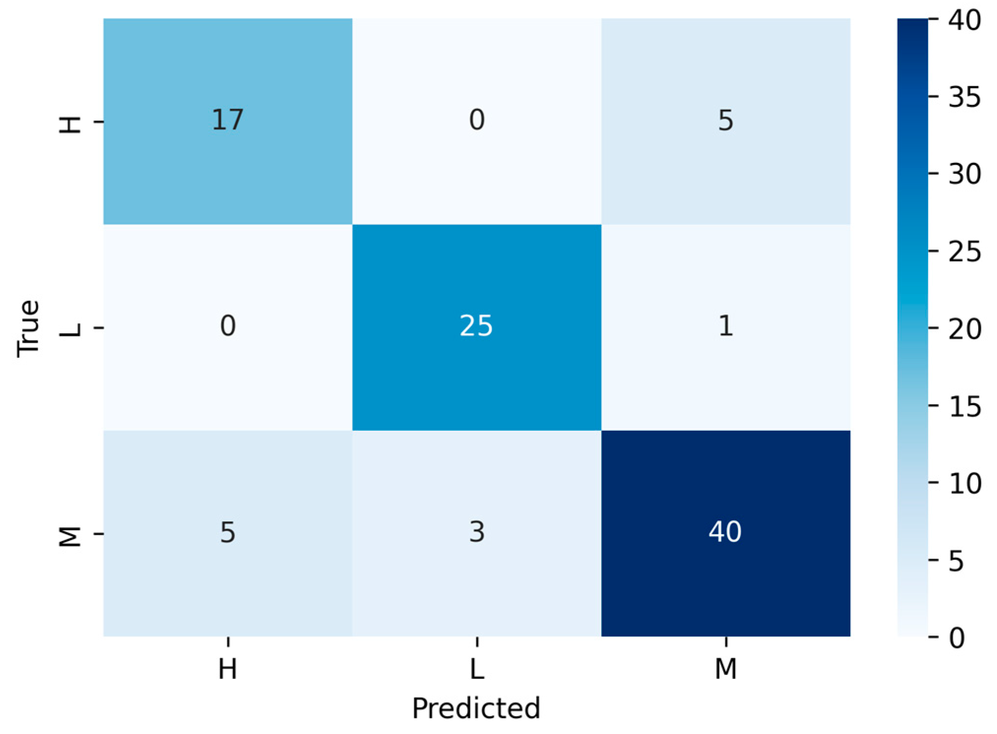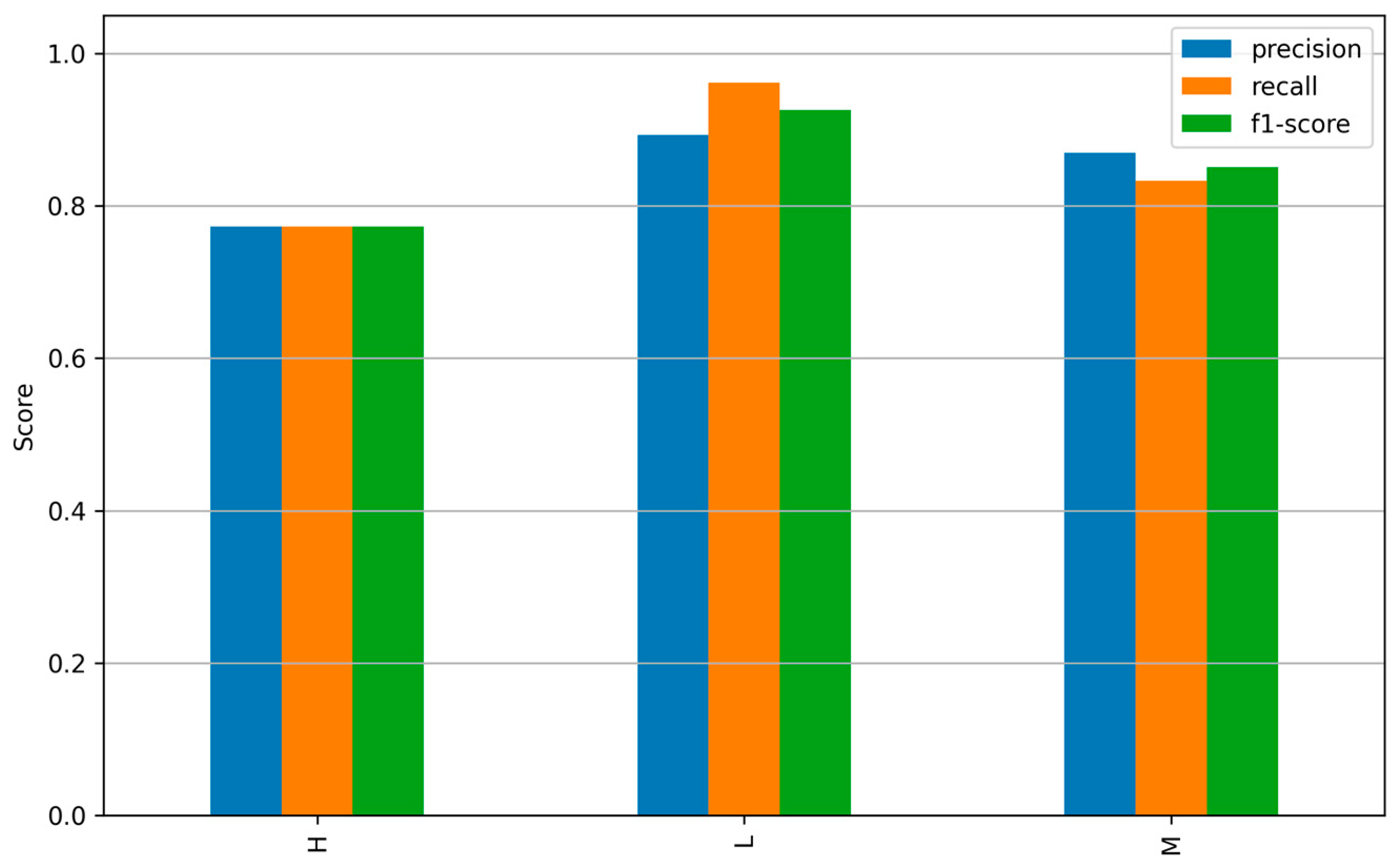 In the class-level F1-scores, we observe good generalization in all classes (Low ≈ 0.91, Middle ≈ 0.86, High ≈ 0.77). In