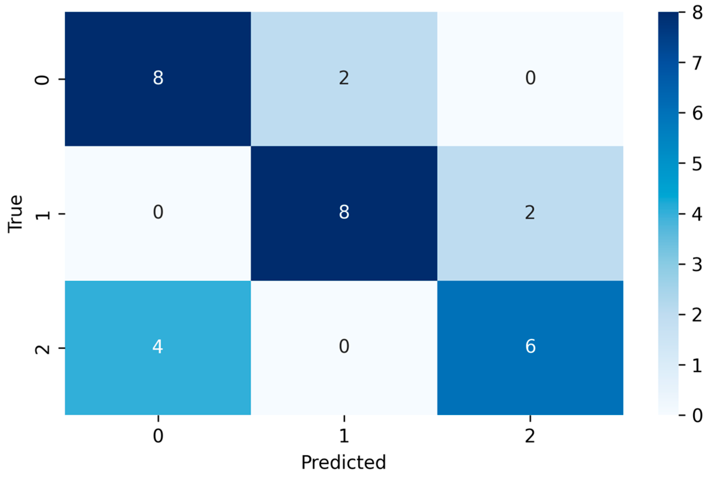 Figure 5) is well-balanced between Class 0 and Class 1, with Class 2 showing a slightly lower precision and may benefit from more examples in the support set.